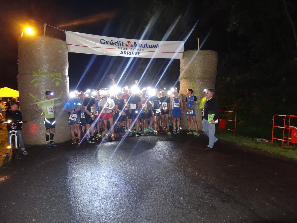 C'est plus sous la pluie que sous les étoiles que s'est déroulée la 2° édition du running sous les étoiles organisée ce jeudi 14 août par l'amicale des sapeurs pompiers de Niderviller. Mais celà n'a pas tempéré l'ardeur des 350 coureurs , ( 347 classés), qui se sont élancés à 21 h 30, munis de leur lampe frontale, formant un long serpent lumineux à travers les rues du village, le long du canal et dans la forêt proche. Légèrement modifié par rapport à l'année dernière avec une petite grimpette supplémentaire, le parcours était rendu spongieux à certains endroits par les pluies des derniers jours. Troisième l'an dernier, Fabrice Jacques( foulées de la Zorn) était l'un des favoris, tout comme Thomas Waeckel ( Dénivelé+), second en juin à Schaeferhoff et à Walscheid, et Florian Weisser( Jog'r) champion de France juniors des courses de montagne l'an dernier. C'est finalement le jeune savernois, secrétaire du nouveau club de traileurs de Saverne, Les traileurs de la Rose, Florian Weisser qui s'impose en 44'22''. Fabrice Jacques se classe second en 44'57'', battant au sprint Tristan Humblet de Verdun 45'00''. La présence en catégorie féminine de la championne du monde de duathlon, la sarrebourgeoise, Cyriane Muller ( ASSA cyclo), ne laissait planer aucun doute pour la victoire finale. Elle se classe 16° au scratch en 50'13'', Anne-Rachel Boch( Dénivelé+) se classe deuxième en 55'24'' et Delphine Fillinger( ASSA) s'offre ,comme jolie cadeau d'anniversaire, la troisième place en 55'26'' .
