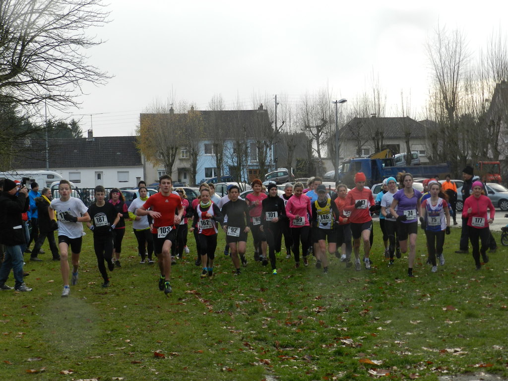 C'est sous un soleil entrecoupé de rares petites gouttes de pluie que c'est déroulée le 2° cross de Neufgrange, 2° étape du 26° trophée Paul Michaux sur un parcours boueux , technique mais bien dans l'esprit du cross à l'ancienne. 203 coureurs ont pris le départ des épreuves organisées par le Trisport de Sarreguemines sous les yeux de Hubert Steinmetz incontournable animateur de l'Unitas Brumath. La course féminine a été remporté par une concurrente surprise venu du Val de Saone, Anais Sabrie en 14'14'', Salomé Saling prend la deuxième place en 15'05'' devant Nathalie Laschweng 15'32''. Après un départ rapide de la course des seniors juniors et vétérans hommes, Le juniors du RA Saverne Victor Waltmann s'installe en tête avec le seniors Stéphan Guérard ( ASSA) qui aura un tour de plus à effectuer. Dès le deuxième des trois tours de circuit, Stéphan a pris le large laissant derrière lui l'ex champion de France juniors des courses de montagne, Florian Weisser (RAS), pour s'imposer aisément en 27'32'', Florian termine en 27'41 et Maxime Rauner (RAS) se classe troisième en 27'50''. Victor Waltmann s'impose en juniors en 18'13'' devant le brumathois François Wolff 18'48''. Patrice Schmitt ( Eichelthal) remporte le classement des vétérans 1 en 28'42'' devant Serge Kuppferschmitt 28'59''. prochain rendez-vous pour le trophée Paul Michaux le dimanche 29 décembre à Schaeferhoff.