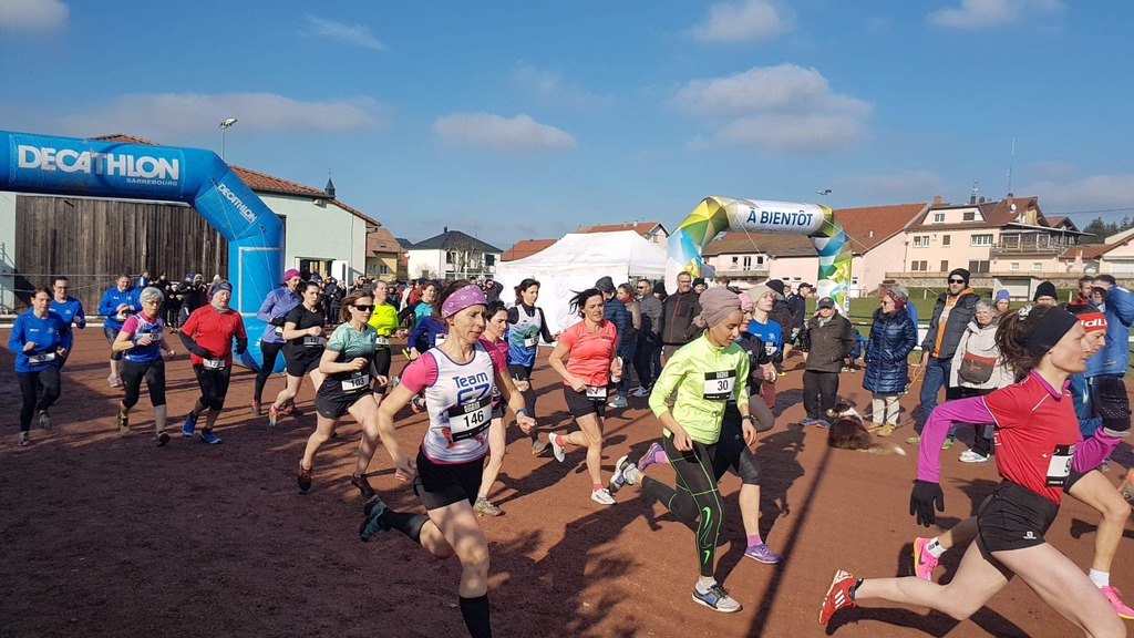 194 coureurs se sont classés au 32° cross de Saint-Louis dernière étape du 35° trophée Paul Michaux. Sous un soleil quasi printanier un public nombreux a pu encourager les athlètes au départ des six courses au programme. Magali Chevrier (ASMS) plus habitué à s’exprimer sur piste s’impose dans l’épreuve féminine de 4 000 mètres en 16’05’’ devant Salomé Saling (Santé Max) 16’37’’ qui remporte le trophée Paul Michaux et Charlène Kleitz (Trailers de la rose) 16’43’’ qui remportera un peu plus tard le cross long 7850 mètres en 35’20’’. David Discher marche sur les traces de son père Jean-Marc et de son frère Romain il gagne la course cadet en 15’27’’ devant Thibault Metz 15’35’’.